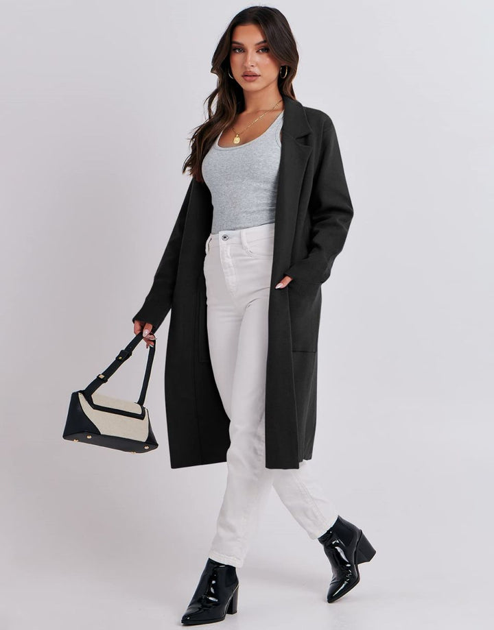 - Design - Newest addition to our sweater-blazer collection! Design lapel open front,long sleeve,slightly oversized,cozy fabric.
