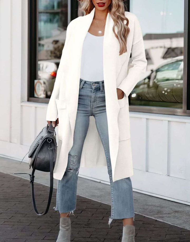 50% Viscose, 30% Nylon, 20% Polyester Pull On closure Dry Clean Only Size - S=US(4-6),M=US(8-10),L=US(12-14),XL=US(16-18) ,see details in rich description. Wash - Hand wash / Dry clean / Do Not Bleach / Dry Flat / Do not iron. Features - draped open front,pockets,long sleeve,thigh length cardigan,knitted,relaxed fit. This cardi is such a perfect choice for cozy days! Warm and soft material, you're sure to love wearing this gorgeous style all day long!The knit material is lightweight, but cozy enough for a breezy fall evening! The gorgeous length is sure to have you swooning, too! You can easily throw this cardigan on over jeans and a top, a cute dress, or a romper for a stylish look! Occassion - Great for casual, daily, school, office, going out, holiday, vacation, street wear in any seasons especially in autumn and winter.