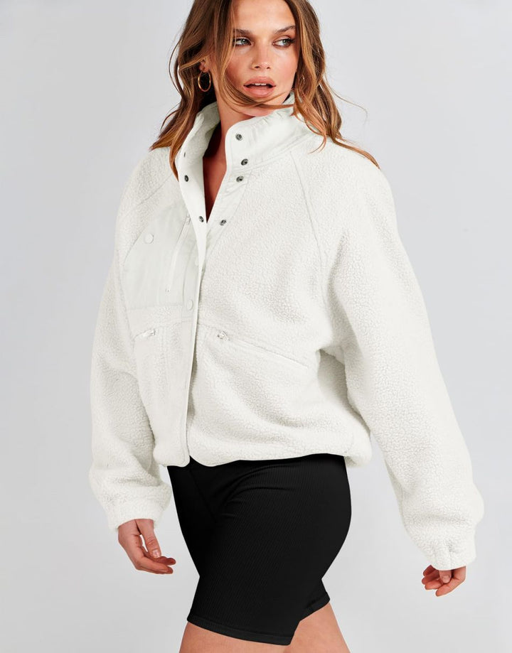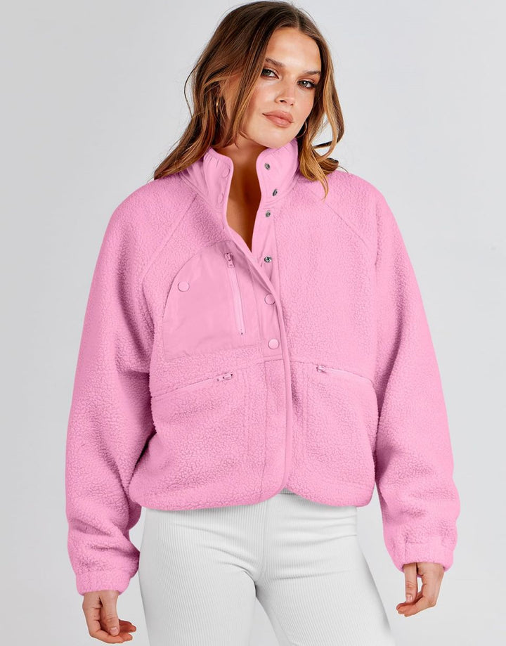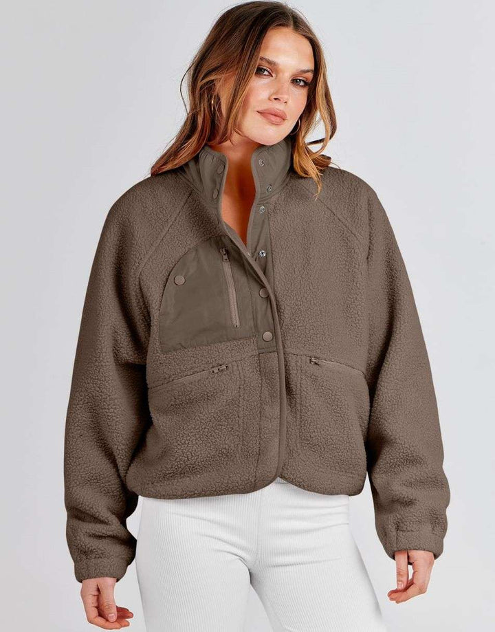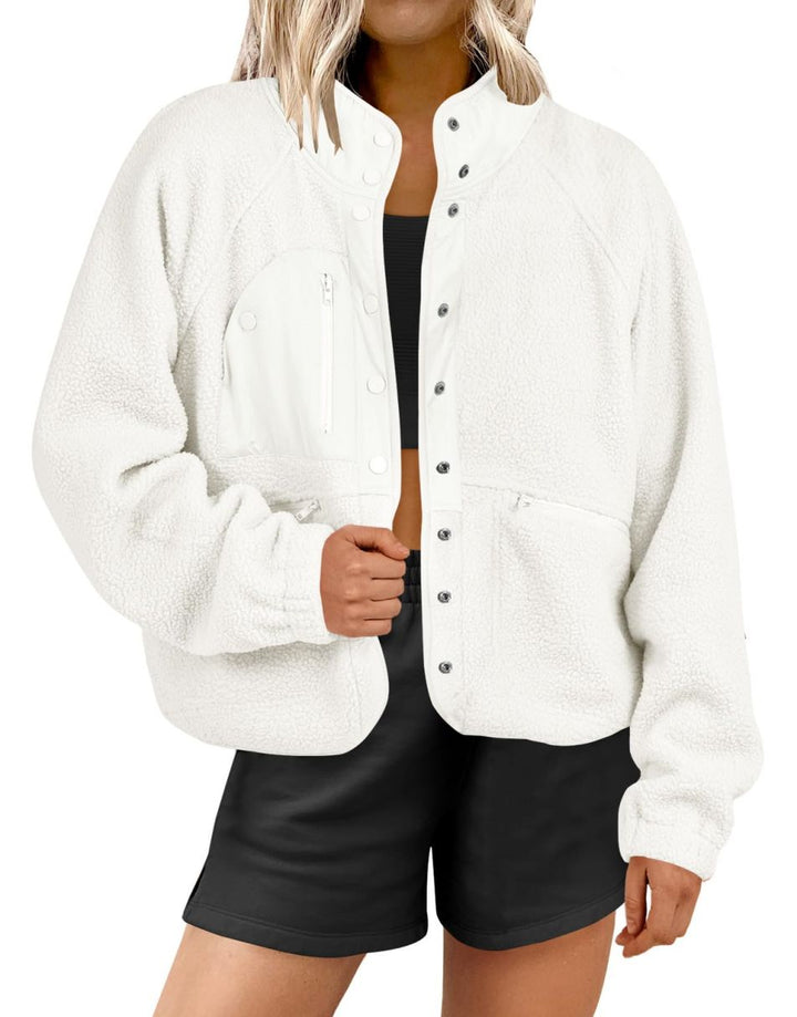ANRABESS Womens Fleece Jacket Button Down Shacket Casual Sherpa Cropped Coats Warm Outwear with Pockets