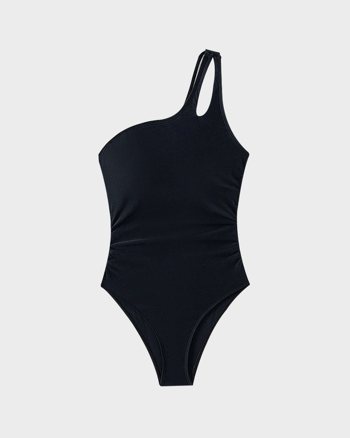 The diagonal shoulder design is ingenious, and it easily Outlines your attractive shoulder line. The hollow element is cleverly integrated into the integrated cut, adding a touch of sexy and generous temperament to the swimsuit.