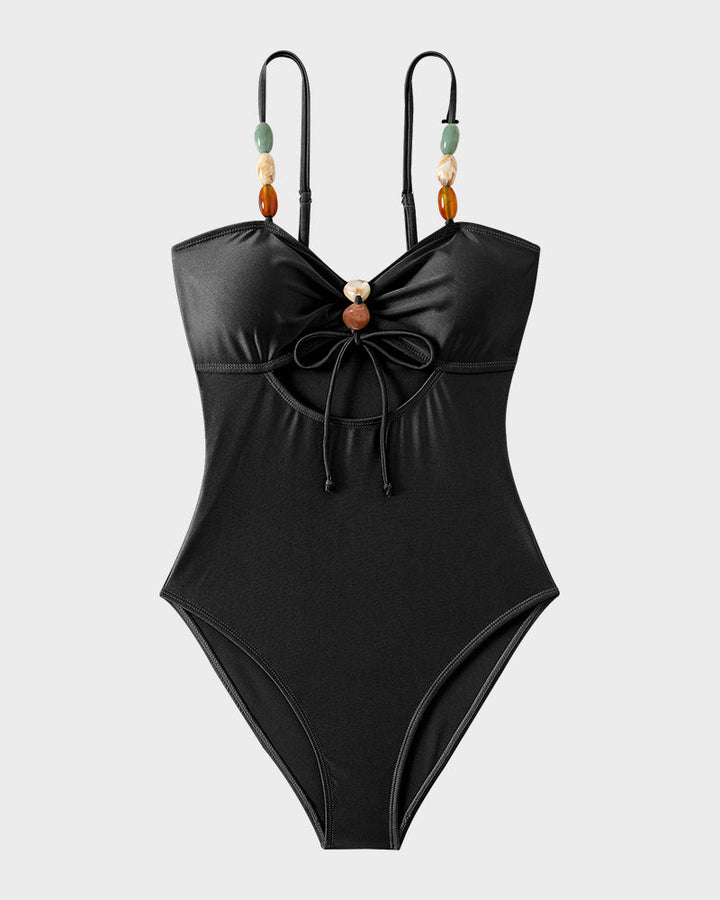 Featuring strategically placed cut-outs, this swimsuit enhances your curves and adds a daring element to your swimwear collection.Beautiful Beaded Accents